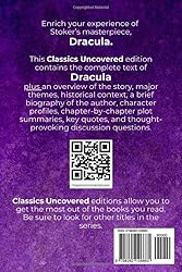 - This Classics Uncovered edition of Dracula presents the complete original novel by Bram Stoker, with added guidance to help readers fully understand and appreciate this enduring gothic masterpiece.Told through letters, diaries, and newspaper clippings, Dracula follows Jonathan Harker, Mina Harker, and a band of allies as they confront the ancient, terrifying Count Dracula. From the shadowy corridors of Castle Dracula to the fog-laden streets of London, Stoker weaves suspense, horror, and romance. The novel explores fear, desire, and the struggle between light and darkness in unforgettable ways.Inside, you will find the full text of Dracula, along with historical context, a biography of Bram Stoker, chapter-by-chapter summaries, character profiles, analysis of major themes, key quotations, and discussion questions to enhance comprehension and discussion.Whether you are preparing for class, leading a discussion, or revisiting a classic with fresh eyes, this Classics Uncovered edition of Dracula offers both the original novel and thoughtful support that enhances the reading experience.