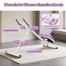 Multi-functional Ab Workout Equipment: This ab trainer machine can be used for a variety of exercises, including ab exercise, sit-ups, rope pulling resistance training, push-ups, lower body shaping and back stretching. It effectively exercises the entire core area, abdomen, waist, back, buttocks, arms and legs Adjustable Ab Trainer Machine: This ab crunch machine has 5 height settings to suit different training stages and meet advanced needs. Increasing the height setting gradually increases resistance, which better stimulates the muscles. It is suitable for use at home to support fitness and body shaping goals Digital LCD Display and Phone Stand: Equipped with a digital LCD screen that monitor calories burned, workout duration and repetitions. During exercise, you can use a phone holder to watch TV shows, movies or listen to music, making the dull fitness process more enjoyable Upgraded Ab Machine Pad: The ab trainer foam pad is supported by 4 silent wheels and can support up to 330 lbs, providing users with a reliable training. Inserting a pin under the pad secures it in place, allowing for sit-up training. The pad features reboundable lumbar support rollers to provide comfort during exercise Enhanced Comfort and Safety: The adjustable abdominal trainer includes a soft foam pad and padded handles, designed to minimize pressure on the knees and back. This ergonomic features provide joint-friendly support for a more comfortable and effective workout. The anti-slip foot pads on the abdominal trainer improved stability