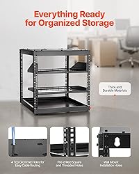 Optimized for Small Spaces: With a depth of 23 in (585 mm), this open frame network rack allows easy access to ports and devices from multiple angles. It accommodates servers and network equipment, maximizing even tight spaces Strong Weight Capacity: This open frame server rack supports up to 500 lbs (226.8 kg) when floor-standing and 200 lbs (90.7 kg) when wall-mounted. Made from carbon steel with reliable weld quality, it is built to last and can handle a variety of devices User-Friendly Design: The open frame rack is designed with ergonomics in mind, making it more convenient to use. The top shelf gives you extra space for storage, allowing you to maximize the available area Widely Applicable: Maximize your space with this open frame AV rack, ideal for retail spaces, classrooms, offices, and any other area where valuable space is limited. It helps you keep everything organized without compromising accessibility Everything You Need: Our open frame network rack comes with a fully equipped accessory kit for easy setup and secure installation: 2 x trays, 1 x screw set, 1 x top panel, 16 x cage nuts, 1 x grounding wire, and 1 x user manual