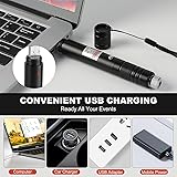 [High-Performance Adjustable Beam]:Experience exceptional clarity with our intense green laser beam. A simple twist of the focusing bezel lets you seamlessly switch from a sharp, long-distance pinpoint to a broad, even floodlight—perfect for both detailed close-up work and illuminating wide areas. [Ultra-Durable Aluminum Alloy Build]:Crafted from premium grade aluminum alloy with a matte finish, this laser pointer is built to last. It features a high-strength, deformation-resistant structure that feels solid and comfortable in hand. The included wrist strap ensures a secure grip and easy portability for all your adventures. [Hassle-Free USB Rechargeable Design]:Say goodbye to disposable batteries. This pointer features a convenient built-in USB charging port. Just unscrew the cap, plug it into any standard USB port (like a computer, adapter, or power bank), and it’s ready to go. No extra cables or battery costs required. [Versatile for Professional & Outdoor Use]:More than just a presentation tool, it’s your ideal companion for multiple scenarios: commanding attention in meetings and classrooms, pointing out celestial bodies during astronomy nights, or serving as a reliable pointer for hiking, camping, and interactive pet play. [Prioritizes Safe & Responsible Operation]:Your safety is paramount. Always use responsibly: never point the laser beam directly at anyone's eyes, aircraft, or vehicles. This product is designed for responsible adults and should be kept out of reach of children.