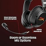 - Swap. Shine. Keep Playing. The HyperX Cloud Flight 2 lights up every match with full-panel RGB paired with magnetic ear-cup plates you can pop off and swap in seconds : no tools, no downtime. Change the look, save one lighting profile onboard, and match your headset to your playstyle, rank, or stream setup. Designed for endurance, turn the lighting off to conserve battery and keep going with up to 100 hours of 2.4 GHz gameplay or 150 hours via Bluetooth. Instant Pair support lets you connect to select OMEN laptops without a dongle, while a simple switch toggles between 2.4 GHz wireless and Bluetooth modes. Stay comfortable through every round with plush memory foam ear cushions, 90° rotating earcups, and steel sliders built to withstand daily wear. The angled 50 mm drivers deliver immersive, game-optimized sound. Use the detachable 10mm boom mic for clear communications or go boomless with the built-in mic when you’re off duty. Onboard controls for audio, microphone, media, and lighting put you in control with convenience : no menus, no distractions. Whether you're gaming, streaming music or videos, browsing Twitch, or completing assignments, the HyperX Cloud Flight 2 keeps you comfortable and stylish with all-day comfort and customizable RGB.