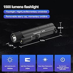 - Long range portable flashlight and green beam combo with star caps, the 9110 flashlight is 1500lumen max, also support momentary/strobe function