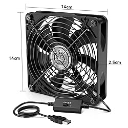 - .Specifications: Item Name: ELUTENG 140mm USB PC Cooling Fan with Thermostat Size: 140mm Rotating Speed: 900/1200/1500RPM Temperature Control Range: -50-110°C Control Accuracy: ±0.1℃ Input Power: DC 220V Output Power: 1500W Package List: 140mm USB PC Cooling Fan*1, Thermostat*1