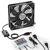 ELUTENG USB Fan 140mm with Digital Temperature Controller, 5V USB Powered PC Computer Fan 1500RPM 3 Adjustable Speeds Electronic Cooling Lufter with Metal Grill for Laptop/TV Box/AV Cabinet/PS5/Router