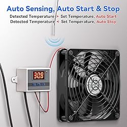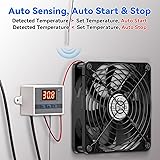 【Intelligent Temperature Control】ELUTENG 140mm computer fan USB is equipped with a digital display thermostat, enabling precise tracking and monitoring of temperature. It automatically senses temperature, turns on and off accordingly, offers both heating and cooling modes, and allows adjustment of start temperature, stop temperature, temperature correction, and delayed start. 【Thermostat Information】Temperature Control Range: -50-110°C; Control Accuracy: ±0.1°C; Temperature Refresh Rate: About 1 Second; Input Power: DC 220V; Output Power: 1500W. It enables intelligent heat dissipation management, avoiding the issues of noise or insufficient cooling associated with traditional fixed-speed fans. 【3 Adjustable Wind Speeds】The USB cooling fan features a 3-speed controller (low, medium and high) to control the wind speed. Rotating Speed: 900/1200/1500 RPM. Depending on the operating environment, you can choose between different wind speed levels. 【More Durable】The 140mm computer fan utilizes a hydraulic bearing, which operates more quietly and is more wear-resistant than dual ball bearing or oil-immersed bearing fans, ensuring stable performance. Both sides are equipped with metal protective grilles to effectively prevent foreign object entry and finger injury. 【Wide Application】The USB PC fan supports 5V USB power supply, offering plug-and-play convenience. With a temperature controller, it is suitable for various cooling scenarios and ideal for cooling PC/laptop/router/cabinet/control cabinet/projector/gaming console, etc.