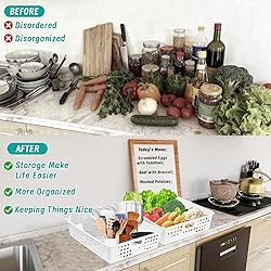 [Plastic Storage Basket] You'll receive 12 pcs plastic storage bins, measuring 14.17 x 10.43 x 3.14 in. A4-sized plastic trays are perfect for organizing a wide variety of daily necessities, helping to reduce clutter. Combine multiple organizer tray to create your own storage system, bringing order to any space. These are essential storage bins for classrooms, offices, and homes. The hollow handles make them easy to move and improve organization efficiency, making them a real pleasure to use. [Easy to Use] Open storage baskets offer excellent organization and can be stacked for space-saving storage when not in use. A4-sized paper tray can accommodate standard letter-sized documents and papers. These perfectly sized desktop organizer baskets are functional and practical, perfect for storage on a variety of platforms, such as closets, shelves, and drawers. The classic and simple white color will blend perfectly with any decoration style and is an ideal choice for home storage. [Plastic Mesh Bin] The multifunctional plastic trays for organizing that all adopt an open design and an elegant and classic hollow round hole design. They are not only simple and beautiful in modern style, but also ensure good ventilation and air permeability, keeping the food inside fresh and the items dry. It also allows you to easily check the items in the plastic organization bins, better organize and store items, and there is no need to search for materials. [Sturdy and Durable] These stylish and practical storage basket are made of sturdy plastic that's resistant to damage and deformation even if dropped. They're high-quality and durable. The hard plastic easily wipes clean with a damp or dry cloth, making them a convenient and easy cleanup option. They're a reliable choice for managing classroom materials, office supplies, or just for home organization needs, and the rounded corners add a safer feel. BPA free, please use with confidence. [Multifunctional Baskets] Storage containers can be used to store documents, books, stationery, art materials, clothing, snacks, toys, cosmetics, fruits, vegetables, medicine, small parts, and more. Keep all stuff neat and organized! Besides classrooms and offices, they're also perfect for kitchens, bedrooms, bathrooms, living rooms, craft rooms, playrooms, art studios, and supermarkets. These lightweight organizer bins come in a generous quantity, so you can share them with family and friends!