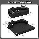 【Creative Convertible Sofa】Our folding sofa breaks the single-function design of traditional sofas and offers great flexibility. The backrest and base can be freely combined and changed. The sofa can be transformed into a futon, two single seats, or a full-size mattress to meet your needs - whether you are working, reading, relaxing, or receiving guests. 【Easy Rebound】 The boneless couch is designed with high-density foam, which makes it less likely to deform after prolonged sitting. It can easily rebound in a short time. The semi-enclosed armrests also serve as comfortable pillows, providing additional support for your elbows. When you lie down, they can also offer a comfortable pillow for your head. 【Stable Structure】The floor couch is fixed by frames which made of stainless steel, so there is no need to worry about fading or peeling paint at all. Also, the bottom is designed with an anti-slip pad, the compressed sofa can be easily used on the floor even if it has no feet. 【No assembly required】Skip the trouble of installation. Our modular couch is vacuum-packed. Just open the package and gently pat each part to help restore its shape. It may take 48 to 72 hours to fully restore. The product comes in only one box, saving you the trouble of logistics. 【Comfortable Fabric】This foldable sofa bed features Chenille cushions, adding a touch of retro elegance to your living space. Chenille is renowned for its durability and wear resistance, making it an excellent choice for daily furniture use.