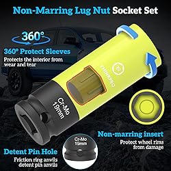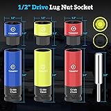 - Thinkpro 7-piece Impact Lug Nut Socket Set Upgrade every tire change with this all-in-one kit. Thin-wall sockets (17 / 19 / 21 mm) + integrated bolt extractor in one kit—flip between hex or anti-theft lugs without swapping tools.The color-codedlug nut socket slip into the tightest wheel wells without marring your rims, thanks to the 360-degree scratch-proof sleeve. Forged from impact-grade chrome-molybdenum steel, they pair with the built-in bolt extractor to chew through stubborn or anti-theft nuts in seconds. Laser-etched sizes and a compact case keep everything organized and ready to roll—so you spend less time wrestling with wheels and more time on the road.