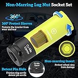 Multi-purpose: This lug nut socket set comprises the most commonly used sizes: 17/19/21 mm. Equipped with impact socket and bolt extractor, which can remove both hex bolts and anti-theft wheel nuts. Scratch Protection: The lug nut impact socket set cover features a 360° scratch guard to effectively prevent damage to the wheel hub's paint finish. And the knockout pin assists in removing damaged nuts. Thin-Wall Design: Our thin wall lug nut socket set facilitates easy nut removal in confined spaces. The dual-purpose 1/2-inch deep impact socket allows access deep into wheel bolt holes. Reliable Materials: Forged from chrome-molybdenum steel, undergoes heat treatment and electroplating processes to ensure long-term stability and extended service life for the non-marring lug nut socket. Clear Identification: Each protective socket set features laser-etched size markings with color-coded differentiation for rapid specification recognition. Boxed packaging facilitates portable storage and organization.