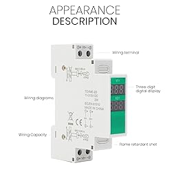 [User Friendly Operation] Featuring an intuitive interface with simple button controls this voltmeter offers effortless operation for users of all skill levels. the straightforward design reduces setup time while providing access to essential functions including customizable alarm thresholds for over under voltage protection. [Easy Din Rail Installation] Designed for convenience this voltmeter mounts directly onto standard din rails eliminating complex wiring and saving valuable panel space. its compact design and tool installation make it for upgrading existing electrical cabinets or new installations. [Digital Signal Conversion] Equipped with a switching output port this voltmeter efficiently converts voltage signals into digital signals enabling seamless integration with control systems. this feature simplifies data processing and enhances automation capabilities for modern electrical setups. [High Measurement] Adopting advanced circuit technology and components this din rail voltmeter ensures accurate voltage measurement with a of 1% for values above 100v. its robust design guarantees reliable performance even in demanding electrical environments making it ideal for industrial and commercial applications. [Clear Lcd Display] The large high contrast lcd screen provides visibility of voltage values and related parameters. with its 3 digit led display users can easily monitor real time data even in low light conditions ensuring constant awareness of electrical system status.