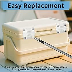 Package Content: This comprehensive repair kit includes 6 plastic cooler hinges and 24 screws, all in a convenient storage box. The sufficient quantity allows you to fully replace old or broken hinges, and the storage box keeps spare parts organized and easy to access. Premium Material: Made of high-quality plastic with UV resistance and high bending strength, can withstand repeated folding and frequent use without cracking or deforming. The stainless steel screws resist rust and corrosion, ensuring long-term stable use. Compatibility: Compatible with most Coleman Cooler models, including 5226, 5227B, 5235, 5236, 5240, 5241, 5241A, 5245, 5250, 5254D, 5896, 6050, 6200, 6201, 6240, 6250, etc. Please note: This product is not sponsored or endorsed by Coleman. Always verify your specific model before purchase. Swivel Cushion Design: The cooler hinges have an innovative trapezoidal protrusion on the front, which prevents hinge damage when opening the lid too forcefully. It enhances use safety and further extends the hinge’s service life for long-term outdoor needs. No-Drill Installation: Remove old cooler hinge screws, align the new cooler hinge with holes, and tighten screws. Even beginners can finish replacement in minutes, quickly restoring normal cooler lid function and saving repair time.