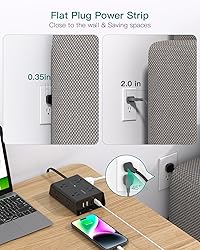 【Flat Plug Extension Cord 15 ft】With 0.35-inch ultra-thin plug and 45-degree right angle design, Addtam flat wall plug can close to the wall easily and hide in the back of furniture, bed or refrigerator. Long extension cord 15 ft can reach anywhere, with only 3mm thicker and made of pure copper, which has better current carrying capacity (15A) 【12-in-1 Mountable Power Strip 】Flat Plug power strip turns 1 socket into 8 AC outlets 2 USB-A and 2 USB-C, which can charge up to 12 devices simultaneously. Screw fixation design on both ends allows this white power strip to be securely installed in various applications (4 screws included). Making your desktop organized 【Wide Space Outlets & Space Save】- 3-side design and each AC outlet with 2.2 inches space in between, larger than other 1.5-inch/1.8-inch socket. Making it enough to fit big adapters and suitable for all kinds of equipment. The compact size (5.2*3.7*1.2 In) saves more space, essentials for the home, office, and college dorm 【Desktop Power Strip with USB Ports】Added extra 2 USB C ports for your devices, the USB C port can charge up to 5V/3A. 2 USB-A ports can charge up to 5V/2.4A Max, compatible with your cellphone, laptop, tablet, earphone or cameras without a variety of converters 【Power Strips with Surge Protection】- 3 complementary surge protection circuits(TVS MOV GDT) with the minimum energy-absorbing capacity of 1080 Joules. The overload protection switch can shut off automatically to keep your device safe. This flat power strip is also protected against over-voltage, over-current, over-charge, short-circuiting