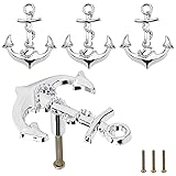 Brosay Kitchen Cabinet Knobs Anchor Drawer Pulls Nautical Beach Themed Coastal Drawer Knobs for Furniture Wardrobe Cupboard Decorative Single Hole Handles 4 Pcs (Silver)