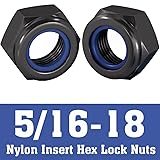- 5/16-18 nylon insert lock nuts feature a robust black e-coating finish and are crafted from high-quality 304 stainless steel. The set includes 60 packs of 5/16-18 hex locknuts, perfect for various assembly and mechanical applications. The 5/16-18 nylon insert provides excellent vibration resistance and prevents the nut from backing off under load, while the hex design allows for easy installation and removal with standard tools. The black coating adds an extra layer of protection against corrosion and wear, making these nuts suitable for indoor and outdoor use. These 5/16-18 lock nuts are beneficial in applications where secure fastening is crucial, such as machinery, automotive work, or general construction projects. The 5/16-18 thread size is a common standard, ensuring compatibility with many bolts and threaded rods. Each nut is precisely manufactured to maintain consistent performance and reliable locking action.