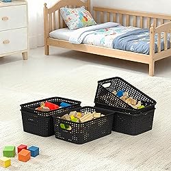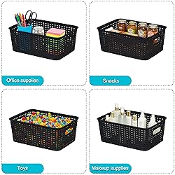 - Our plastic storage baskets offer a versatile and stylish way to organize your everyday essentials. Measuring 10.1L × 7.1W × 4.0H inches, each basket is perfectly sized to fit shelves, drawers, pantries, or countertops, keeping your space neat and clutter-free. Made from thick, premium-quality plastic, these baskets are sturdy and durable enough for daily use. The woven design provides excellent ventilation, allowing contents to stay clean and dry while adding a simple decorative touch to your home. With integrated handles on both sides, the baskets are easy to lift and move, offering convenient access wherever you need them—whether in the kitchen, bathroom, laundry room, or office. Their open-top design makes it easy to see and grab items at a glance, helping you stay organized effortlessly. Practical, minimalist, and built to last, these plastic storage baskets are an ideal solution for organizing small household goods, toiletries, beauty products, snacks, stationery, and more. Simplify your life and maintain a tidy, elegant space with our versatile storage baskets.