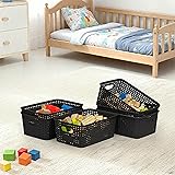 Soddeph 3 Pack Plastic Storage Baskets with Handles,Stackable Organizer Bins for Closet, Bathroom, Kitchen, Office, Shelf and Cabinet Organization (Black, Grid-3PACK)