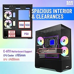 - Raidmax i801 Tempered Glass Aqua View Case - Corner Structure-Free Panoramic Design, 3 ARGB Fans included, and Support for 360mm Water Cooler and 400mm GPU