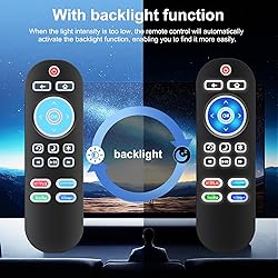 [With backlight] This remote control is equipped with backlit function. Press any button, the light will light up for 10 seconds, and the light will automatically turn off. [No Setup Required,Fit for All Built-in Roku TV]Universal Replacement TV Remote Compatible with All Roku Series TV, [Nice Remote Control]Our remote has been upgraded to give you a greater transmitting distance (over25 ft) and has a quick response time of 0.3 seconds,and the keys have been tested to support over 120000 click.With 4 shortcut keys, you can directly access your favorite streaming channels. [Premiun Material]The remote Material Made of ABS Plastic and Silicone,so that makes remote very comfortable and durable,the keys are soft and respond very sensitively. [Easy to Use] Simply insert the 2 * AAA battery and the remote can be used immediately without complex programming or pairing.