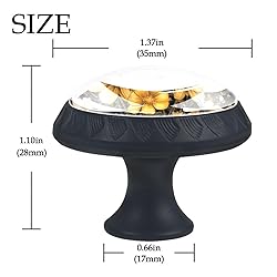 High Quality Material: The kitchen cabinet knobs is made of high-quality ABS material and crystal glass, which can withstand heavy daily use without cracking or deformation. The dresser drawer knob is very wear-resistant and has a long service life, which greatly reduces the maintenance and replacement costs. 304 stainless steel deep thread screw allows the drawer pull handle to be firmly fixed to the cabinet/drawer, not easy to loosen or fall off. Drawer Knobs Size: Top Diameter: 1.37 inch(35mm); Base Diameter: 0.66in (17mm); Height: 1.10 inch(28mm). Our package contains 4 cabinet knobs and 8 screws. Dresser drawer knobs and pulls weight is 130 grams, not too light weight making them good quality, and there will not be much abrasion under daily high-intensity use. Unique Design: Cabinet knob adopts a round mushroom shape design with black color, a print inside the transparent glass cover at the top of the drawer knobs, and a circle of black texture around glass, which is a perfect combination of tradition and modernity. The curved dome design fits the palm naturally, making dresser knob easy to grasp and pull, truly integrating beauty and practicality. Widely Used: Closet door knob is an ideal cabinet hardware to beautify the entire room. Black drawer knobs can be applied to cabinet drawer, dresser drawer, closet door drawer, chest drawer, cupboard drawer, wardrobe drawer, shoe drawer, bookcase drawer.Handles are widely used in living room, kitchen, bathroom, and bedroom. Easy to install: The single hole black knob for cabinet is very easy to install. You only need to drill a hole in the board, pass the screw through the back of the board, tighten the round knobs, and the installation is complete. We supply 2 different size screws to fit cabinets/drawers of various depth. The sizes of screws are: 1.1 in and 1.37 in.
