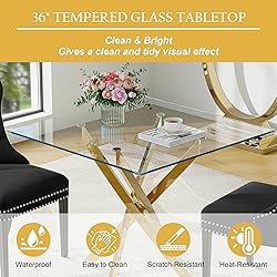 【5 Piece Dining Table with 4 Chairs】This dining table set includes round/square glass dining table and 4 matching chairs. The dining room table set is spacious enough to provide comfortable meal space for 4 people. It is easily fits into any size dining area, making it one of your favorite dining spots in your home. 【Glass Kitchen Table Set for 4】Crafted from tempered glass and stainless steel, our dining table combines timeless elegance with remarkable durability. The clear glass and textures of the stainless steel bring warmth and character to your home, while ensuring long-term resilience against daily use. 【Elegant Sleek Dining Chairs】Crafted with velvet breathable fabric and a sturdy wooden frame, these comfortable dining room chairs are designed for long-term use. The solid rubber wood legs and adjustable foot pads ensure stability and prevent scratches on your floors. They are perfect as modern dining chairs for your dining room or kitchen, offering a blend of elegance and comfort. 【Easy Assembly and Maintenance】The package includes assembly tools and detailed instructions, making the glass dining table set for 4 easy for one person to set up. Both the dinner table and chairs have smooth surfaces that require only a damp cloth for routine cleaning and maintenance. 【Professional After-Sales Service】For any product-related issues when using this glass dining table set for 4, feel free to contact us, and we will provide professional and timely after-sales support. Please note that your modern dining table set will be delivered in 3 packages.