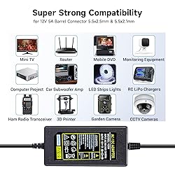 - Product specification Input: 100~240V AC, 50/60Hz Output voltage: 12 Volts Output current: 5 Amps Max Cable length: 6feet (180cm) Working Temperature: 0~40℃ Storage Temperature: -20~60℃ Ambient Humidity: 0~95% Non-Condensation Package includes 12V 5A power supply adapter x 1 Product highlights Superior Safety; Flame-retardant exterior shell and built-in safeguards to protect against overheat, overload, over-charging, short-circuit provide ultimate protection for you and your devices. Warm reminder Note: applicable range 12 volts and not exceeding 5 amps. (jack is positive center) Not suitable for mobile phones, computers, tablets and other precision electronic products. Note: Please check the power specification of the device port to confirm whether it is compatible. This adapter is not waterproof. If you want to use it outdoors, please set up waterproof protection.