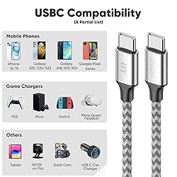 Extra Long 25ft Convenience: Enjoy unparalleled freedom with our 25ft (7.6m) USB C to USB C cable. No more being tethered to the wall outlet! Perfect for charging your devices comfortably from the couch, bed, or the back seat of your car. The ideal extra-long length for home, office, and travel use. 40W Fast Charging:Power up your devices in no time. This Type C cable supports fast charging up to 40W (e.g., 20V/2A), ensuring your USB-C tablets, and smartphones, Game Controller get a rapid and efficient power boost. Spend less time waiting and more time doing. (Note: Actual charging speed depends on your device and wall charger). Durable & Sleek Design:Built to last, this cable features a premium silver nylon-braided exterior and a reinforced aluminum alloy shell. It's designed to withstand over 15,000 bends, preventing fraying and breakage. The slim, reversible USB-C connector fits snugly into your devices, even with a case on. Reliable Data Transfer:This is a USB 2.0 C to C data transfer cable that supports data sync speeds of up to 480Mbps(40MB/s). Effortlessly transfer photos, music, videos, and files between your USB-C devices. It provides a stable and secure connection for all your syncing needs. Universal Compatibility & Important Note:Works seamlessly with a wide range of USB-C devices, including iPhone 17/16/15/Pro/Pro Max, Samsung Galaxy S24/S23/S22, Google Pixel 9/8/7/6/5, iPad Pro/Air, and more. [IMPORTANT] This cable DOES NOT support video output or monitor connection (No DP Alt Mode). It is designed for charging and data transfer only. DT Thoughtful Service: You will receive 25 foot usb c cable after purchase. We also have friendly customer service and lifelong technical support, improve product quality while giving you the best service