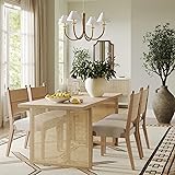Willow is a bohemian style 6-person dining table with solid wood frame construction and light brown wood veneer finish. It highlights a synthetic rattan accent for a relaxed, tropical vibe. The rattan inlays also provide better frame stability. Whether it's a cozy family dinner or a festive holiday feast, the Willow dining table has a generous space for 6 so everyone has a comfortable spot! This solid wood table adds a touch of elegance and warmth whether your home is modern, rustic, or somewhere in between. Truly a versatile piece. Easy 20-minute assembly and lifetime manufacturer warranty: try for 100 days.