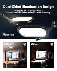 Bundle & Save 18.69% – Add both the "10.5'' Selfie Phone Light for Video Recording + 1 Pack Dual-Sided Eye-Care Desk Lamp" to cart and instantly save $17.96 compared with purchasing separately, enjoying pro-level lighting for every call, task or stream without breaking the bank Product 1 | BRIGHTER & SOFTER LIGHTING: This desk ringlight features an large 10.5'' lamp head, its curved cover design sets it apart from other flat lamp. We've enhanced the lampshade with a thicker coating to provide brighter illumination while avoiding dazzling problems. Our eye-friendly webcam light will not produce glare even after long hours of use, effectively protecting your eyes! This professional selfie soft light is perfect virtual class, zoom meeting, remote work or video conference Product 1 | ILLUMINATE YOUR WORK: This desktop ring light is easy to set up and powered by USB, making it easy to use with your power bank, computer, or 5V 2A adapter (not included) anytime and anywhere. Whether you're conducting webinars, teleconferences, or simply want to enhance your FaceTime or Teams calls, this Zoom light will take your video calls to the next level. It's perfect for WFH, bloggers, vloggers, streamers, photographer, nail artist and anyone looking to make a lasting impressio Product 2 | SMOOTH DIMMING: This adjustable office desktop lamp is equipped with an upgraded remote control, with an easy rotation, you can adjust the brightness (1%-100%) and color temperature, creating different light modes to meet any need, from soft ambient lighting to bright task lighting. Besides, our remote control features a memory function to save the last setting. Whether it's a cosy twilight atmosphere, fresh sun light or romantic night light, it's all at the touch of a button Product 2 | VIDEO CONFERENCING LIGHTING QUICK MODE: One touch illuminates the exclusive light for video conferencing, giving you an instant glow. Also, you can change the setting to your ideal lighting mode, and just one touch to turn it on every time. Our computer zoom light are perfect for formal virtual online meetings or interviews, or even relaxed video calls with friends. They provide even illumination and reduce shadows, enhancing your appearance and making you look more professional
