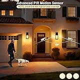 LTBLIGHT 2-Pack Motion Sensor Outdoor Wall Light Fixtures, 3 Modes Dusk to Dawn Porch Light Lantern with 3 Modes, Modern Black Waterproof Outside Lighting for House, Patio, Garage, Front Door