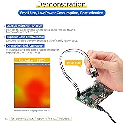 Cost-Effective Thermal Vision: Features a Melexis MLX90640 32x24 pixel IR array, providing a budget-friendly entry into thermal imaging for projects that don't require ultra-high resolution. Easy Integration & Broad Compatibility: Utilizes a standard I2C communication interface (up to 1MHz) and works with 3.3V/5V logic levels. Perfect for Raspberry Pi, and compatible with popular platforms like Arduino and STM32. Compact & Low Power Design: With a small footprint (20x18mm) and low operating current (<23mA), this module is ideal for portable applications and embedded systems without draining your power source. Reliable Performance:Offers a wide temperature measurement range from -40°C to +300°C with an accuracy of ±2°C. Features a configurable refresh rate (0.5Hz to 64Hz) and a low Noise Equivalent Temperature Difference (NETD) of 0.1K. Open-Source Resources: We provide open development resources and tutorials, making it easier to get started, especially for Raspberry Pi users. Jumpstart your thermal sensing project quickly.