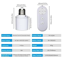 - E26/E27 Wireless Light Socket with Remote Control, LED 40W Smart Timer Switch 110V-220V Lamp Holder ,the remote light socket is easy to turn your lights on/off from anywhere whenever you want, no wiring required,convenient for home, office, and the remote control light lamp socket is perfect for the elderly,children and those with limited mobility.
