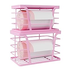 TIDIIABODE 2 Pack Pink Trash Bag Holder - Stackable Garbage Bag Dispenser with Bamboo Top, Kitchen Accessories & Decor, Wall Mount Storage for Kitchen, Home, Bathroom Decor & Gifts