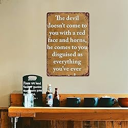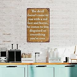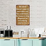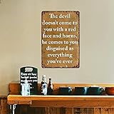 SXUZUSF Versatile & Fun Metal Sign - The Devil Won'T Come To You With Red Faces And Horns Aluminum Metal Sign For Home Bedroom Bathroom Bar Wall Decoration Size 12x8 Inch