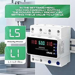 【Automatic & Manual Dual Switching for Power Outages】Unexpected power outages can disrupt daily life or RV travel. This automatic transfer switch instantly switches from main power (L1) to generator power (L2) and back when utility power returns. Prefer hands-on control? Use manual transfer switch mode anytime—giving you flexible, reliable power management for home generators or RV systems. 【Built-In Voltage & Current Protection for Equipment Safety】Power instability can damage sensitive appliances. This generator transfer switch features over-voltage, under-voltage, and over-current protection to help stabilize power flow and reduce electrical risks. Ideal as a backup power transfer switch for home, it helps protect generators, furnaces, and connected devices during outages. 【Real-Time Voltage Monitoring with Clear LED Display】Avoid guesswork during power switching. The integrated LED screen provides real-time voltage monitoring, allowing you to quickly check system status at a glance. This LED display transfer switch helps you identify abnormal voltage early and make informed decisions with confidence. 【Compact DIN Rail Design for Fast Installation】Limited space in electrical panels or RV cabinets? This DIN rail transfer switch is designed for standard electrical cabinets and utility rooms, making installation faster and cleaner. The compact layout supports 110V, 50/60Hz systems and fits neatly into home or mobile power setups. 【Versatile Power Switching for Home & RV Applications】Whether you need a transfer switch for home generator, an RV transfer switch, or a reliable solution for workshops and utility rooms, this automatic generator transfer switch (ATS switch) delivers stable performance across multiple environments—ideal for everyday backup power needs.
