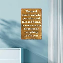 The Devil Won'T Come To You With A Red Face And Horns Metal Signs Text Art Poster Home Wall Decor, Suitable For Bedroom, Living Room, Bar, Restaurants,Fence,Etc.,Warning Sign,8×12 Inch