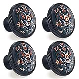Artinhand 4 Pack Cabinet Knobs Round Matte Black Drawer Pulls, Norwegian Rosemaling Folk Style Hardware Dresser Knob for Bathroom Kitchen