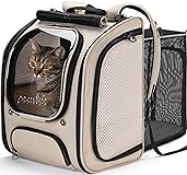 Pecute Cat Backpack Carrier Expandable, Large Space Cat Bubble Backpack, Breathable Cat Carrier, Shaded Dog Backpack Carrier for Travel, Hiking, Vet,12.6" L x 10.2" W x 16.5" H, Khaki