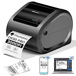 Wireless Ethernet Bluetooth Fast Connection - D530Pro 2026 new upgraded Bluetooth thermal label printer, equipped with high-speed Bluetooth connection, easy to operate within 10 meters can be through the computer and cell phone to print your labels, in addition to the Phomemo shipping label printer also supports the Ethernet/USB cable to connect with the computer.Perfect compatible with Android/iOS phones and Windows/macOS/Linux/ChromeOS computers. 300DPI Fast Ultra HD Printing - D530pro Wireless Label Printer Equipped with high-precision print head, print clarity up to 300DPI, and the print speed is also up to 150mm/s, an average of 72 4x6 inch thermal labels can be printed per minute, in addition, this bluetooth desktop thermal printer also has a return to the paper towel function, to help you save every piece of the label, greatly saving your costs! Built-in paper slot for space saving - The D530PRO shipping Label Printer has a built-in paper slot and label holder that can hold up to 500pcs of 4x6 inch label paper rolls, eliminating the need to purchase additional roll holders, saving space and keeping your desktop cleaner. Powerful Platform Compatibility - The D530Pro Bluetooth Label Printer is compatible with all major shipping platforms and sales platforms such as USPS, UPS, FedEx, DHL ,Amazon, Ebay, Shopify, Esty, PayPal, Poshmark and more. The Phomemo 4x6 thermal label printer is great choice for your small business! Great Partner for Home and commercial use - The Phomemo thermal shipping label printer can print various types of commercial labels. If you run a small business, it can print shipping labels, mailing labels, and barcode labels. If you are a retailer, it can print product labels, bakery labels, packaging labels, and promotional labels. If you use it in an enterprise setting, it can print freight labels, warehouse labels, and be used for labeling products. Compatible with various label sizes and shapes - The D530 Pro 300dpi USPS label printer is perfectly compatible with Phoemmo series labels. Its printing width ranges from 1" to 4.6". The 4x6 thermal printer can print various labels, including shipping labels (4x6 inches), rectangular labels, circular labels, and labels in special shapes, perfectly meeting all your labeling needs.