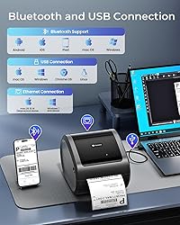- Phomemo Ethernet Thermal Label Printer 4x6, Bluetooth Shipping label printer for Small Business, 300DPI Thermal Printer