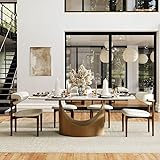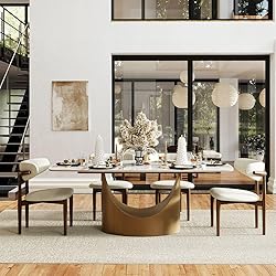Minimalist Dining Table: POVISON dining table is a perfect blend of simplicity and modern design. With clean lines and a sleek profile, this kitchen & dining room tables offers a minimalist aesthetic that adds a touch of modernity to any dining space. Its understated elegance allows it to effortlessly complement a variety of interior styles Modern Dining Chairs: Our dining chairs set feature a premium combination of Ash Wood and PU Leather, due to the material of the product, the appearance of wrinkles is normal phenomenon. Their simple yet stylish design effortlessly complements various dining tables and diverse interior decor styles, adding timeless charm to your home U-Shape Pedestal Table: The U-shape pedestal sets itself apart with its distinct and eye-catching design. The bronze dining table pedestal crafted for carbon steel, not only adds a touch of uniqueness but also provides excellent stability and support. This innovative design element enhances the dinner tables functionality but also adds a touch of style to the overall aesthetic Space-Saving Design: Povison modern dining chairs neatly tuck away inside the table when not in use, saving valuable space and keeping your area tidy. This dining table set can transform your dining area into a breakfast nook, a cozy spot for afternoon tea, or a casual coffee corner Easy To Assemble: There are the manual and full set of hardware necessary to guide you through assembly easily. Dining table - put the tabletop on the base and tighten it with screws to complete the installation