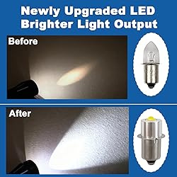 ✅►【Perfect Fit】-- The 3W flashlight LED bulb perfect fit for Maglite 3-16 Cell C/D Flashlights Torch. NOTE: This flashlight led bulb CANNOT match with Bi-pin Xenon Bulb. DONNOT fit 2 C&D Cells Maglight flashlight ✅►【Improved Brightness】-- Convert most C and D 3-6 cell PR-type flange incandescent flashlights into bright, energy-efficient LED light (Not Fit 2-cell C/D) ✅►【Long Lasting】-- These flashlight LED bulbs has a long service life to provide support and convenience, greatly saves energy, you will find it durable, reliable and can provide estimated 50,000 hours of use time ✅►【 Easy to Install】 — The LED conversion kit for Maglite is designed to fit snugly into your flashlight. Just unscrew the head, remove the fixing ring and old flashlight bulbs, then insert the replacement bulb. (NOTE: The bulb for Maglite LED flashlight replacement is negative-ring, positive-tip, please check your flashlight before ordering.) ✅►【Buy Confidence】-- Non-original replacement parts—contact us if not completely satisfied; not sponsored, endorsed, or affiliated with MagLite
