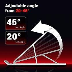 ✔【Adjustable & Ergonomic】The laptop stand for desk features 6 adjustable angles ranging from 20° to 45° (0.98-5.9in / 25mm-150mm), allowing you to customize the angle to a comfortable working position based on your specific needs. This design is for a perfect eye level, letting you fix posture and reduce your neck fatigue, back pain, and eye strain. ✔【Portable & Foldable】This portable, foldable laptop stand is lightweight and easy to fold and carry, weighing only 0.55 lbs/0.25 kg. It comes with a compact storage bag that fits easily into your bag, making it convenient for use at home, in the office, at a coffee shop, or at an airport terminal. ✔【Cooling】This laptop stand is crafted from exquisitely crafted 3mm aluminum alloy, with a hollow design to facilitate air circulation and prevent overheating. ✔【Durable】Features non-slip silicone pads to protect your device from scratches. The extra-thick design supports up to 44 lbs/20 kg, ensuring a secure hold. ✔【Compatibility】The aluminum metal notebook holder is suitable for laptops ranging from 10 to 15.6 inches, such as MacBook Air, Dell XPS, as well as various types of phones, tablets, drawing boards, and books. ✔【Professional and Guaranteed】FIREBAT has been deeply involved in the field of computers and accessories for more than ten years. Whether for home, business, education, or gaming, FIREBAT can always meet your needs. As a professional manufacturer, we pay more attention to the quality and performance of our products (support@firebatpc DOT com; www.firebatpc DOT com).