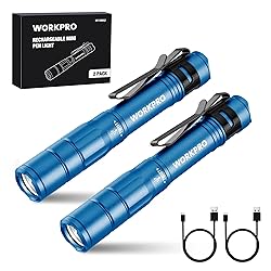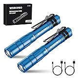 • WORKPRO Rechargeable Pen Light, Mini Flashlight, 2 Pack Ultra-Compact EDC Flashlight, Pocket Flashlight with Clip, Memory Function and 2 x USB C Cable Included, Blue