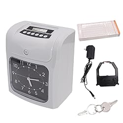 - Spec: Item Type: Electronic Time Clock Product Material: ABS Working Temperature: -30-40℃ Working Humidity: 10%-80% RH Card Size: Approx. 188 x 85 x 0.35mm / 7.4 x 3.3 x 0.014in Package List: 1 x Time Clock 1 x Color Ribbon 101 x Attendance Cards (1 for Trial) 1 x User Manual 2 x Keys 1 x Plug How To Use: Refer to the manual for installation