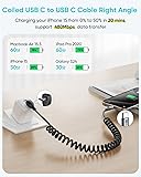 SUNGUY Right Angle Coiled USB C Cable 4FT [Recommended Stretch Length:1FT-2.6FT] 2Pack 60W USB-C to USB-C Cable for Android Auto, Carplay, iPhone 17/16/15 Pro Max Plus, Tesla Model Y, Galaxy, Pixel
