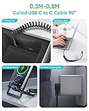 【90 Degree USB C Spiral Cable】The 60W Coiled USB C to USB C cable is specially designed for use in cars. The Tesla Model Y features a large storage compartment in the center console, which also houses two USB-C ports. With the angled connector, you can fully utilize the storage compartment without worrying about damaging the plugs or ports. 【Coiled USB C Cable for Tight Spaces】The Right Angle USB-C plugs make it easier to connect to devices in tight spaces, such as next to sofas or desks. You don’t have to worry about the plug breaking. It can also be used on phone stands for charging, extending the cable's lifespan. 【USB C Charging Cable for Rear Car Vents】This USB C Cable fast charging can be connected to the rear vents of your car, making it ideal for charging devices in the back seat. Thanks to its coiled design, you don’t have to worry about the connector breaking, and it won’t tangle while saving space. 【1FT-2.6FT Android Auto USB Cable】The Android Auto USB C Cable has a natural length of 1FT and a maximum stretched length of 2.6FTM.The Coiled USB Type C cable is convenient for charging your devices in tight spaces, in the car and when travelling. Do not stretch to the limit !!!!! 【60W Fast Charge & Data Transfer】 Coiled USB C Cable Right Angle supports fast charge and high data transfer, max power is 60W, speed of data transfer up to 480Mbps. Please note that this is a USB C to USB C charging cable, please pay attention to your device interface. Compatible with Android Auto/Carplay, USB-C devices such as mobile phones, tablets and computers. 【What You Get】 You will receive 2 pieces 1FT-2.6FT 90 Degree USB C to USB C cable , please feel free to contact us if you have any questions. You are also welcome to make suggestions for the improvement of our products.