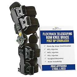 - The Brace Align FlexTrack ROM Telescoping Knee Brace is a medical-grade solution for post-operative recovery and ligament stabilization. Engineered with a fully adjustable range of motion from 0° to 120°, this brace allows you and your physician to control flexion and extension at every stage of healing. The telescoping frame customizes to your leg length, while strong side bars and locking dials deliver stability against valgus and varus stress. Ideal for ACL, MCL, and PCL injuries as well as post-surgical rehabilitation, the FlexTrack helps protect healing tissues and restore mobility with confidence. Built for comfort as well as protection, this post op knee brace features breathable liners that reduce skin irritation and a lightweight yet durable frame for all-day wear. The universal design fits most adults and can be worn on either the left or right leg, making it a versatile choice for recovery support. Whether you are recovering from knee surgery or stabilizing a ligament injury, the FlexTrack ROM Knee Brace provides the adjustable, orthopedic-grade support you need. PDAC approved for codes L1832 and L1833, it combines professional-level features with personalized fitting through Brace Direct’s Perfect Fit Promise.