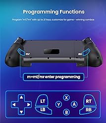 ONE CONTROLLER, ALL YOUR DEVICES: The switch 2 controller works seamlessly with Switch 2/1/OLED, iPad mini, iPhone, and Android. Enjoy full compatibility with Xbox Cloud Gaming, Steam Link, GeForce Now, and native mobile games like Call of Duty and Roblox. (Not compatible with PlayStation Remote Play.) QUICK CONNECTION GUIDE: For Switch 2/OLED/Switch — Go to Console menu, press & hold HOME for 3 seconds to connect. (No wake or C-button support on Switch 2); For iPhone/Android/iPad Mini — Press B+HOME together for 3s, then select "Xbox Wireless Controller" in Bluetooth settings. Perfect for Xbox Cloud Gaming, Steam Link, and native mobile games. (Not PS Remote Play) HALL EFFECT STICKS ELIMINATE DRIFT: This wireless switch 2 controller features advanced Hall Effect joysticks and triggers that use magnetic sensors instead of physical contact, delivering precise, drift-free control for games like for Zelda and for Mario Kart. PRO-LEVEL CUSTOMIZATION – Macro PROGRAMMABLE & TURBO: This wireless phone controller for iphone delivers pro-grade controls right in your hands. Two remappable back paddles can store 21-step macros for executing complex combos with a single press. The adjustable turbo function (5/12/20 presses per second) automates simple rapid-button presses—perfect for shooting games and action titles where speed matters. SECURE, COMFORTABLE GRIP FOR EXTENDED PLAY: Engineered for marathon comfort, this phone controller's ergonomic shape fits naturally in your hands to prevent fatigue. The telescoping grip securely holds devices from 4.5" to 8" wide with full rubber padding that protects your Switch 2 or phone—no need to remove most cases. Textured handles provide a confident, sweat-resistant hold that stays comfortable for hours. PERSONALIZE WITH APP & RGB LIGHTING: Take full control with this customizable switch 2 controller. Fine-tune every detail via the Keylinker App (iOS/Android)—remap buttons, adjust stick sensitivity, and personalize your settings. Customize the dynamic RGB lighting with 10 dazzling effects and 5 brightness levels. The 800mAh battery keeps you in the game for 8–10 hours of uninterrupted play. Your Complete Gaming Ecosystem: Eliminate drift anxiety, upgrade your mobile gaming, and unlock cloud gaming worlds. This wireless switch 2 game controller isn't just the perfect gift for gamers—it's the key to bringing friends together for multiplayer battles. More than an accessory, it's your gateway to better gaming on every screen and at every gathering.