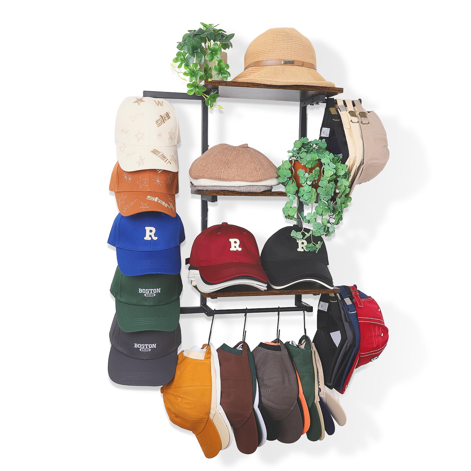 - Elevate Your Space with Intelligent, Symmetrical Hat Hangers for Wall Tired of choosing between style and function? The Keebofly hat hooks for wall is where they perfectly meet. We designed this piece for those who appreciate a clean, uncluttered home but refuse to compromise on practicality or aesthetics. It’s the wall mount hat holder that finally brings harmony to your walls and order to your daily routine. Smart 3-Zone Design: Thoughtful from Top to Bottom Every detail has a purpose. Our symmetrical layout isn’t just beautiful—it’s brilliantly functional, offering a dedicated spot for everything in your life. The Display Tier (Top): Six strategically placed hat hooks for wall (3 on each side) keep your favorite baseball caps and daily-wear hats visible and within easy reach. The Utility Shelf (Center): This is your game-changer. The versatile shelf transforms the unit from a simple hat hanger into a multi-functional ledge for perfumes, a small plant, keys, or decorative accents. The Storage Bar (Bottom): A sturdy bottom rod with six S-hooks provides flexible, high-density storage for off-season caps, creating a vertical hat rack for wall that maximizes capacity in a minimal footprint. Adaptable to Your Lifestyle: Solutions for Every Room See how this hat organizer for wall brings calm and efficiency to your home’s key areas: Your Serene Vanity Corner: Free up your desktop. It’s the perfect vanity organizer extension, creating a dedicated home for your perfumes, cosmetics, and a cap, turning clutter into a curated display. Your Clutter-Free Closet: Solve your storage crisis with this hat display wall mount. As an efficient closet organization tool, it systematically stores dozens of caps right next to your wardrobe, keeping your collection tidy and accessible. Your Efficient Entryway: Transform any blank wall into a command center. It’s the ultimate entryway organizer and apartment organization must-have, holding everything from your go-to cap and keys to mail, water bottles, and umbrellas. Premium, Worry-Free Construction Invest in a piece that’s built to last. This cap holder organizer for wall is crafted from solid wood and reinforced, rust-resistant metal hat hangers, this wall mounted hat rack offers unwavering stability. It’s a reliable, permanent hat storage solution that far surpasses flimsy over the door hat racks or single-purpose hat hooks. We include a full installation kit and a visual guide for a truly hassle-free setup, backed by our responsive customer support. Ready to transform your wall into a hub of style and order with this hat racks for baseball caps wall? Click and experience the Keebofly difference today!