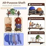 【𝟑-𝐙one 𝐒mart 𝐇at 𝐎rganizer: 𝐃isplay, 𝐒tore, & 𝐒tyle】 Since you need drill hole, why choose basic hat hangers? This sleek wall hat rack with shelf offers sophisticated organization: 𝐃isplay (𝐂enter): 6 cradling hooks (3+3) for favorite,daily-wear caps—always visible and accessible. 𝐒tore (𝐁ottom): A sturdy rod with 6 S-hooks for high-capacity storage of off-season or stacked caps. 𝐒tyle (𝐒helf): A versatile top shelf for beanies, perfumes, plants, or decor—function beyond stacking off-season collections. 【𝐒ymmetrically 𝐃esigned for the 𝐂ollector & the 𝐒tylish 𝐇ome】 Where beautiful balance meets smart function. This wall hat organizer features 6 cradling hooks (3+3) and a central shelf for visual harmony. 𝐂ap collectors, appreciate the order: A high-capacity hat wall organizer that stores and displays your growing scalable collection with pride. 𝐒tylish homes, enjoy the blend: A sleek wall mounted cap rack that merges favorite caps with perfumes, cosmetics and decor in one unified display. One design, two perfect solutions. 【𝐖here 𝐅orm 𝐌eets 𝐅unction in 𝟑 𝐊ey 𝐀reas】 A gallery for your hats, a command center for your life. This versatile hat holder on wall brings order and style to your busiest spaces: 𝐘our 𝐕anity Clear clutter with a spot for perfumes, cosmetics, and favorite caps. 𝐘our 𝐂loset: A cap holder and hat hanger storage system for 60+ caps, growing with your collection. 𝐘our 𝐄ntryway:The drop-zone for keys, mail, phones, and bottles—for smooth in-and-out. One system for your whole lifestyle. 【𝐒turdy , 𝐃ependable, 𝐏rotective,𝐒pace-saving】 Your Peace of Mind, Built In. Crafted from solid hardwood and reinforced metal, this wall mounted hat rack is built to protect and to save space. Its firm-grip hat hooks for wall cradle each cap to prevent misshaping. while its compact, wall-mounted design unlocks valuable real estate in closets and entryways. The result? A baseball hat holder that ensures your prized collection stays gallery-ready, day after day. 【𝐂omplete 𝐏ackage for 𝐄asy 𝐈nstall】 This hat organizer for baseball caps is designed for a Hassle-Free Start. We ensure your setup is as smooth as your new organized space. Everything you need is in the box: 𝐀 𝐅ull 𝐈nstallation 𝐊it with all necessary hardware. 𝐀 𝐅ully 𝐈llustrated, 𝐒tep-by-𝐒tep 𝐆uide for clear visual assistance. 𝟐𝟒/𝟕 𝐂ustomer 𝐒upport ready to assist you. Your smooth setup experience is our priority, guaranteeing immediate results.